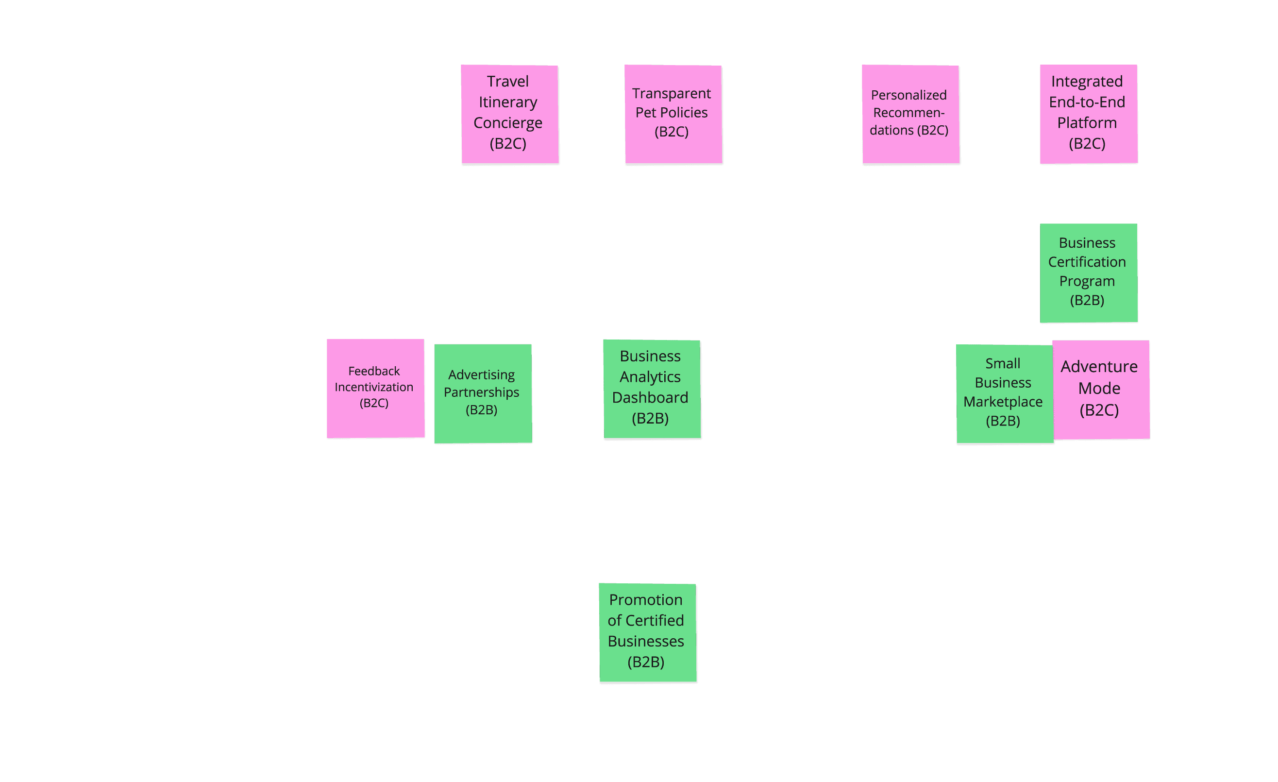 Evolved a simple B2C idea into a B2C+B2B ecosystem that rewards businesses for being truly pet‑friendly instead of just marketing it.