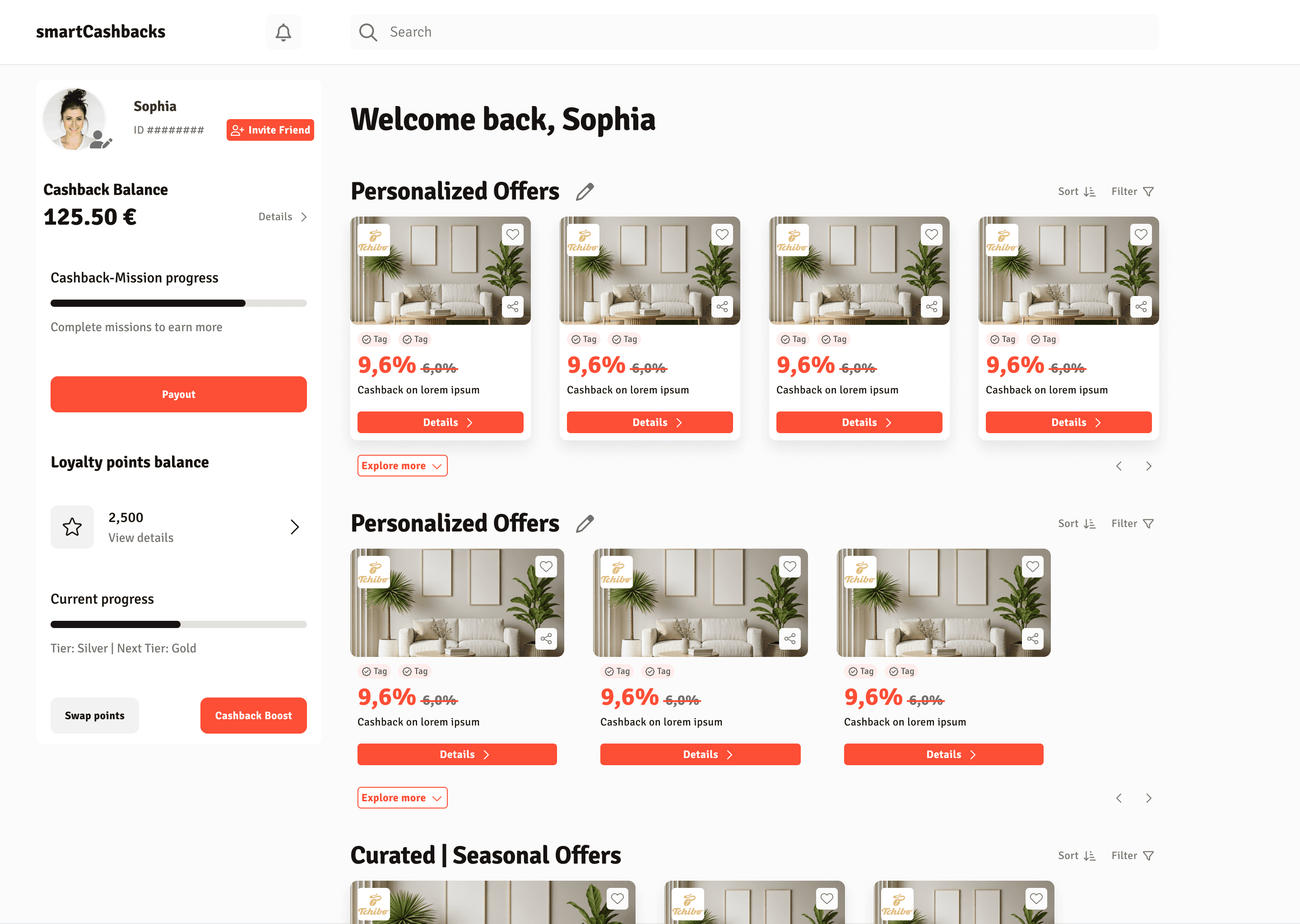 The solution should not be “a points feature on top of cashback,” but a connected ecosystem: Experience Points, Boosts, Direct Cashback, Exchanges, personalised recommendations, SmartSearch, and Cashback-Mission, all anchored in one coherent structure.