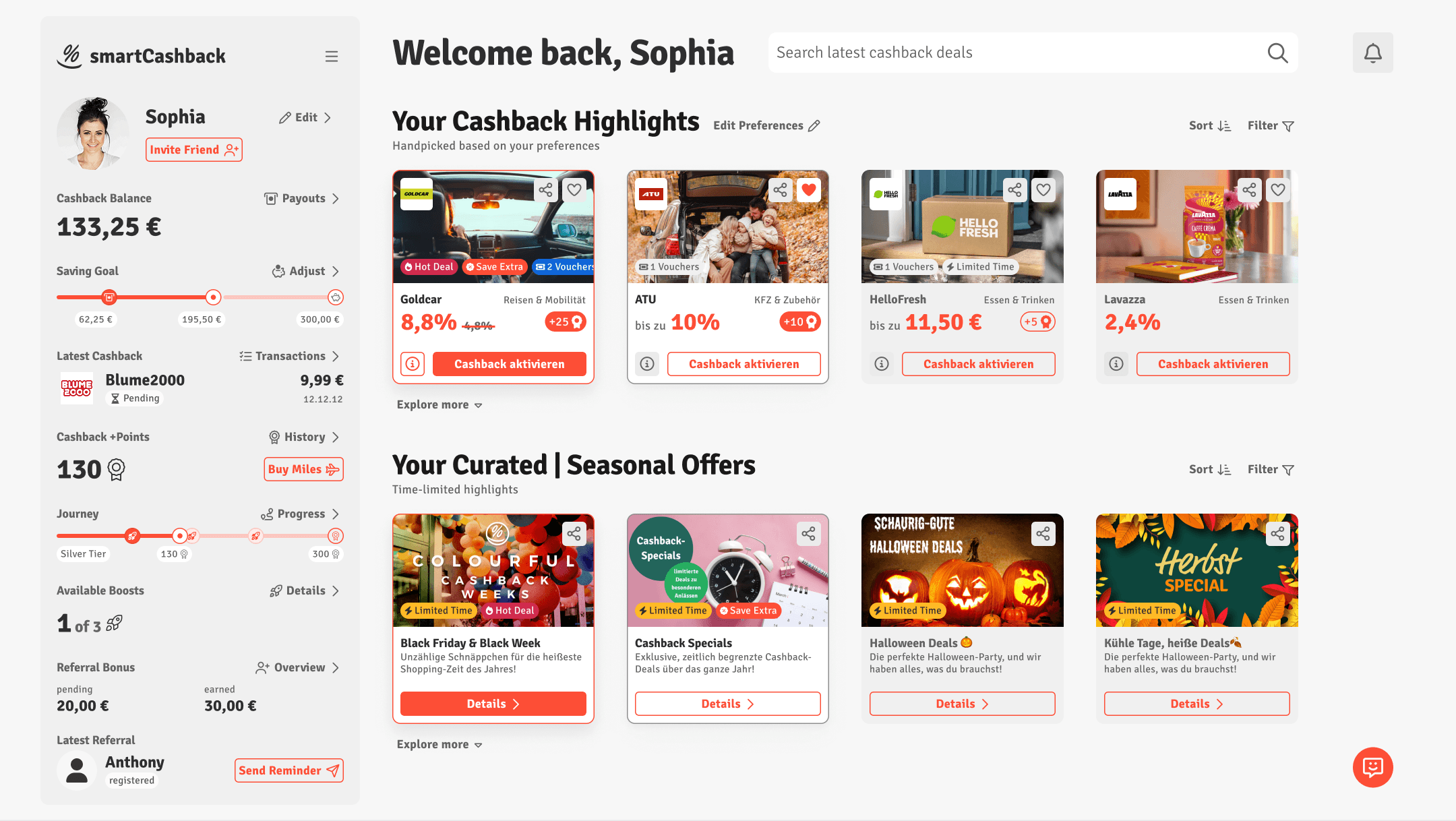 Through research and cross-functional workshops, the brief was reframed into smartCashback: a unified savings ecosystem.